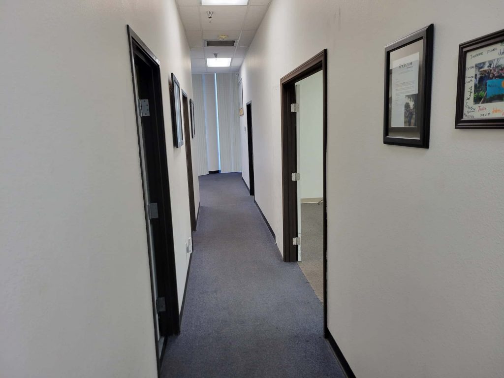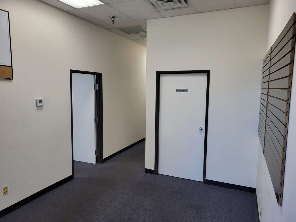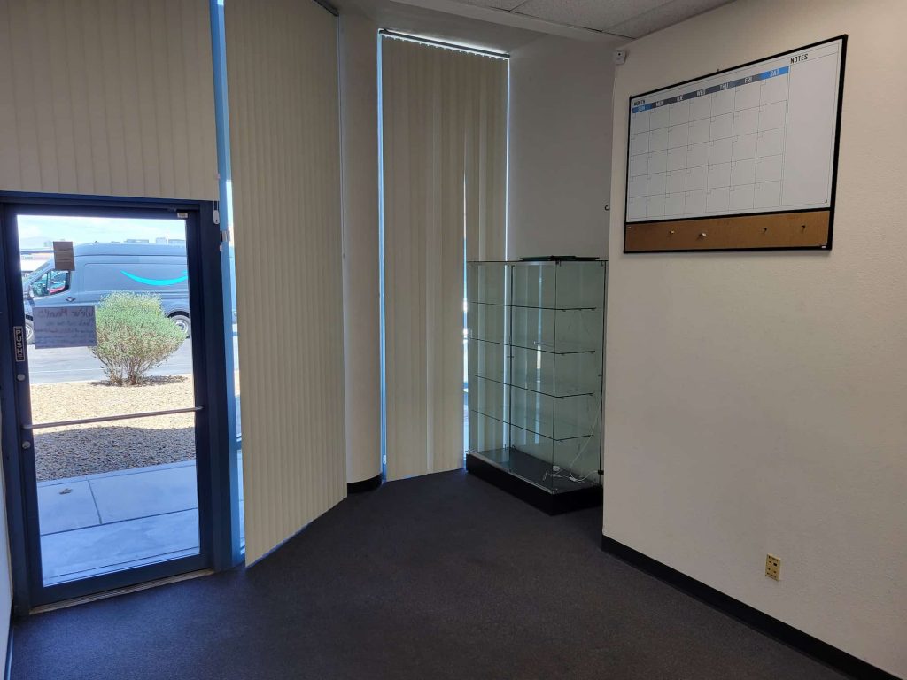 Centrally located near the Harry Reid airport and Allegiant Raider’s Stadium in Las Vegas near the intersection of Dean Martin & Post Rd, this 1,500sqft office space includes a 500 sqft back warehouse with roll up garage door. The warehouse is connect by a door at the end of the central hallway. The business owner leasing the space has leased this office since 2014 running a small coffee roastery business in the back warehouse as well as a web design, graphic design, and SEO website marketing company ALLinWebPro.com. The 1000 sqft office is unused and available for sublease on a flexible month-to-month basis.